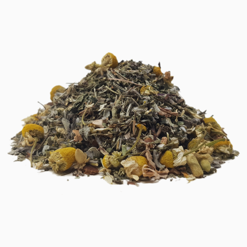 Ortie, fleurs de camomille, pissenlit, sauge, prêle des champs et écorce de bouleau.