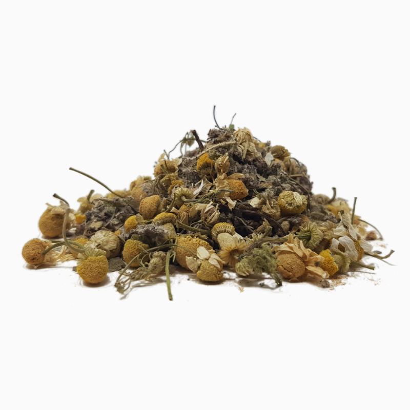 Poudre de cynorhodon, fenugrec, cumin noir, aubépine, ginkgo, fleurs de camomille, fenouil, artichaut et betterave rouge.